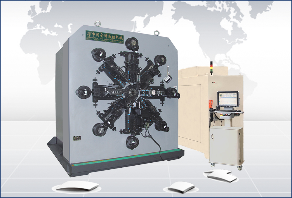 適合于生產各種壓簧、矩形簧、鋼皮蝸卷簧、塔形簧、雙扭簧、扁簧等高難度異形彈簧,極大的增加了彈簧加工范圍。